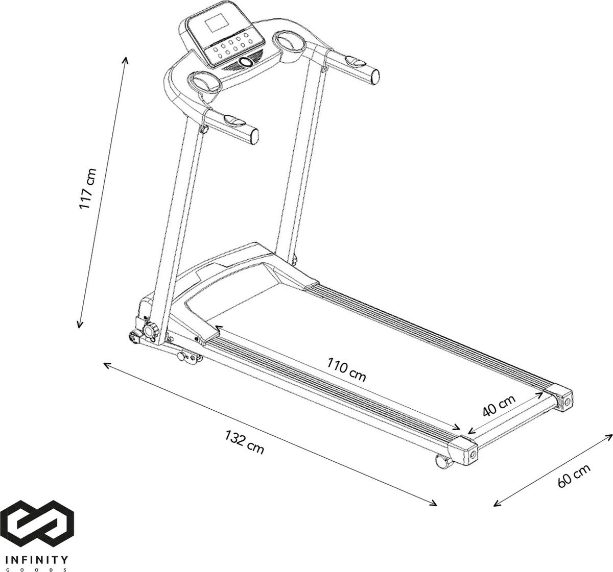 De Infinity Goods loopband beschikt over een handige tablethouder. Ideaal voor het bekijken van je favoriete series, films of het luisteren naar muziek terwijl je je fitnessdoelen nastreeft. Zo wordt elke trainingssessie niet alleen effectief, maar ook aangenaam en motiverend.