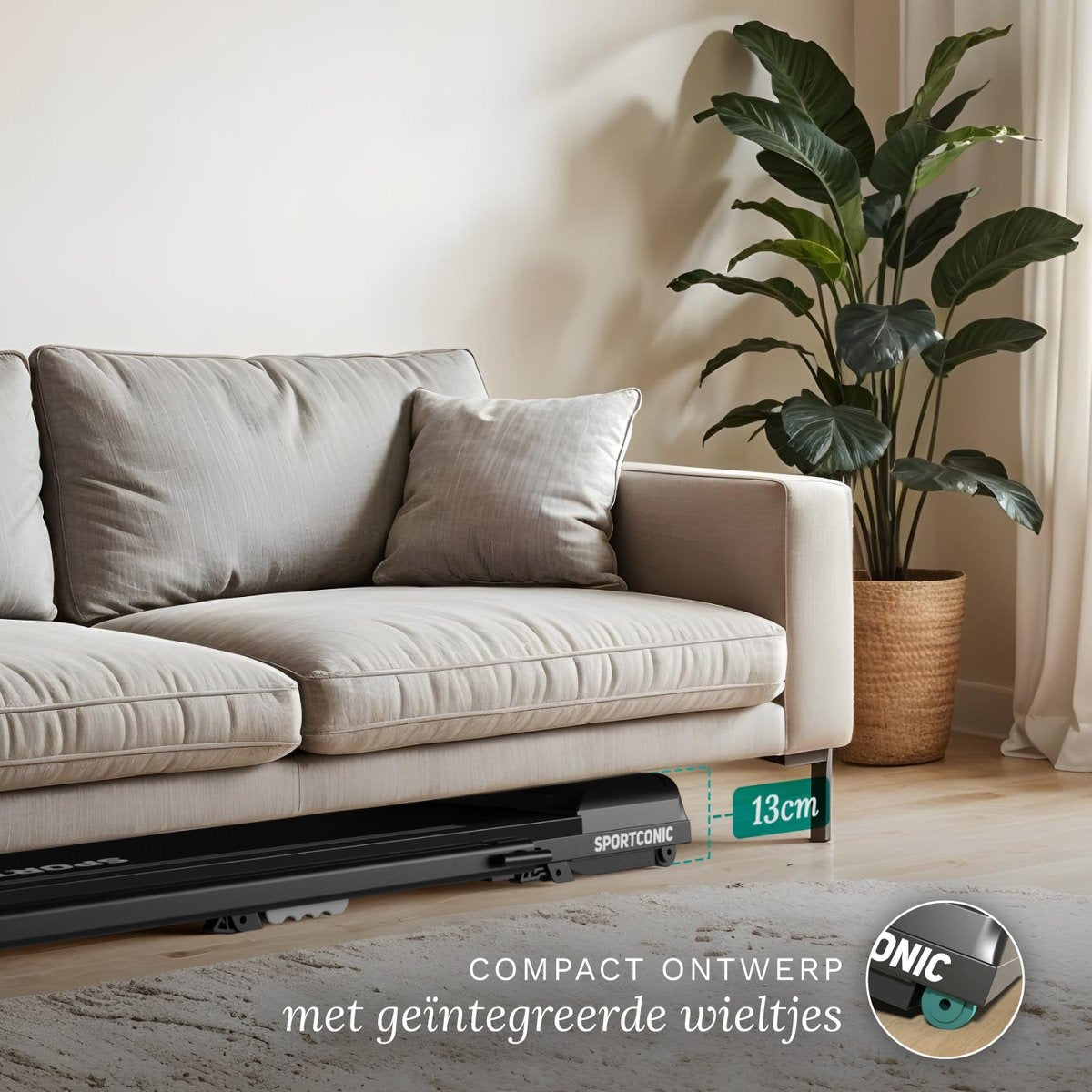 Wil je graag vitaal en fit blijven of je conditie weer op peil brengen? De loopband van Sportconic is uitermate geschikt om thuis te kunnen hardlopen of wandelen. Met een snelheid tot 12 km/u is deze loopband geschikt voor zowel beginnende als gevorderde lopers. Dankzij de uitklapbare functie, lage profiel en het compacte ontwerp is de loopband ideaal voor gebruik onder een zit-sta bureau. Voeg beweging toe aan je werkdag en blijf actief terwijl je werkt.