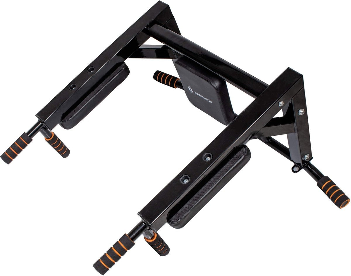 De Springos pull up bar is een echte aanvulling voor thuis om goed in shape te komen! Het multifunctionele pull up station zorgt ervoor dat u op elk moment van de dag uw arm-, rug-, buik-, en zelfs beenspieren kunt trainen. Met de vier verschillende grepen kunt u alle spiergroepen aanspreken. Het schuim op de ergonomische handvaten en de bekleding zorgen voor een comfortabele training met optimaal resultaat. Wilt u het station liever gebruiken als een dipstation, dan is dat tevens mogelijk. Een veelzijdig apparaat voor een full body workout!
