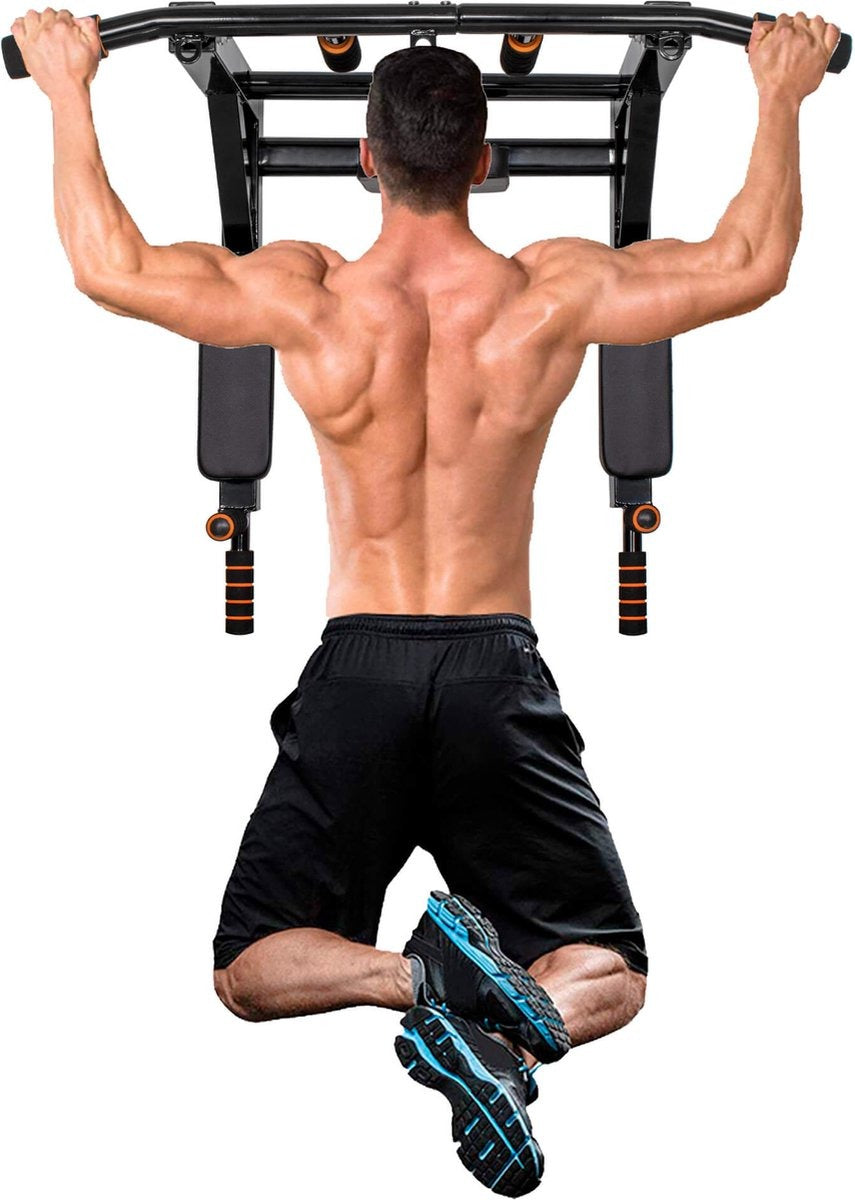 De multifunctionele pull up bar kan als optrek- of dipstation worden gemonteerd. Er worden verschillende muurhaken meegeleverd zodat u makkelijk kunt wisselen tussen optrek- en dipstation. Een full body workout was nog nooit zo simpel.